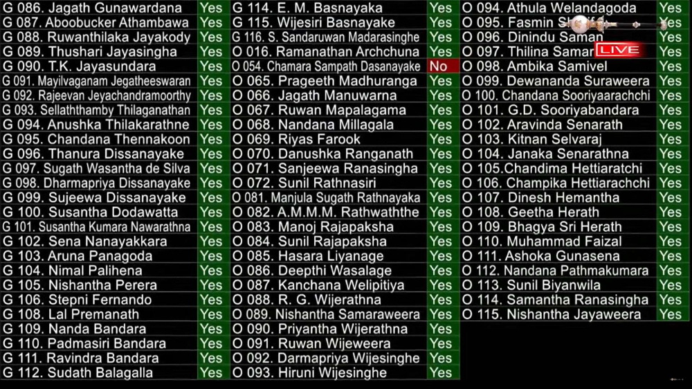 ජනාධිපතිවරුන්ගේ හිමිකම් ඉවත් කිරීමේ පනත් කෙටුම්පත අද පාර්ලිමේන්තුවේදී වැඩි ඡන්දයෙන් (පක්ෂව ඡන්ද 151 ක් හා විරුද්ධව ඡන්ද 01) සම්මත වී තිබෙනවා.